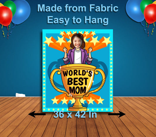 World's Best Mom V1, Face Cutout, 36x42" Photo Stand-in, Party Selfie Photo Prop