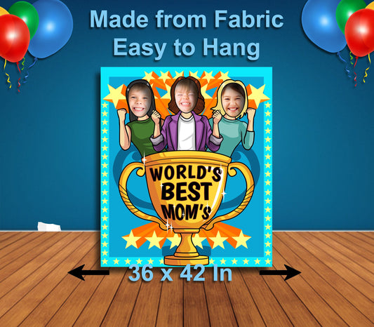 World's Best Mom's Theme Face Cutout, 36x42" Photo Stand-in, Party Selfie Photo Prop